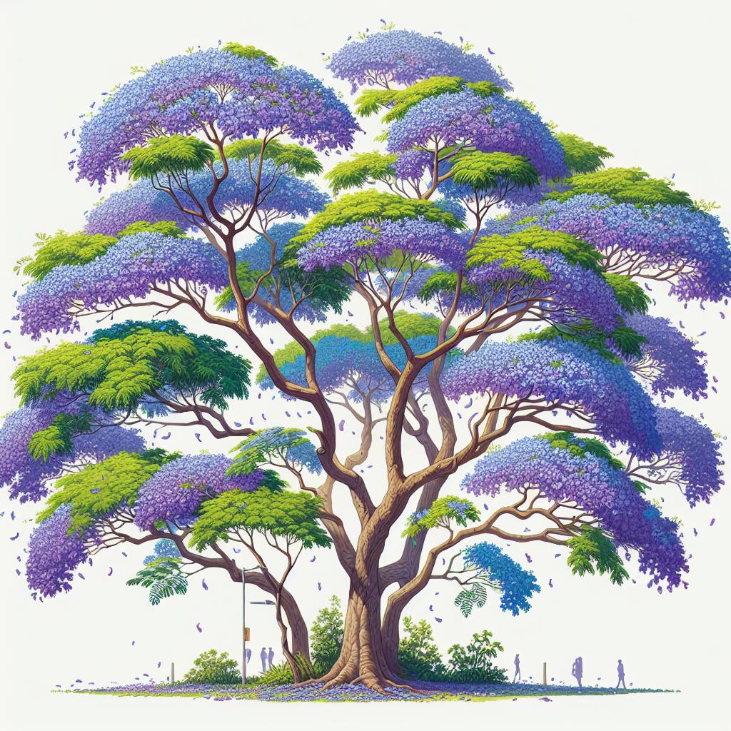 ### Jacaranda (Jacaranda mimosifolia) #### Safety Information for Pets The Jacaranda tree (Jacaranda mimosifolia) is generally considered to be non-toxic to pets such as cats and dogs. However, it is always advisable to prevent pets from ingesting any plant material, as it can sometimes cause mild gastrointestinal upset or other reactions in sensitive animals. #### General Description - **Scientific Name**: Jacaranda mimosifolia - **Common Names**: Jacaranda, Blue Jacaranda, Black Poui, Fern Tree - **Family**: Bignoniaceae - **Plant Type**: Deciduous Tree #### Physical Characteristics - **Height**: Jacaranda trees typically grow to a height of 25 to 50 feet (7.6 to 15.2 meters) but can sometimes reach up to 60 feet (18.3 meters) under optimal conditions. - **Spread**: The canopy can spread out to a width of 15 to 30 feet (4.6 to 9.1 meters), providing ample shade. - **Leaves**: The leaves are bipinnate, feathery, and fern-like, usually about 12 to 24 inches (30 to 60 cm) long. Each leaf consists of many small leaflets, giving the tree a delicate appearance. - **Flowers**: The Jacaranda is renowned for its spectacular, trumpet-shaped, lavender-blue flowers. These blooms appear in large, showy clusters, typically in late spring to early summer, and can sometimes produce a second bloom in the fall. - **Bark**: The bark is light gray and becomes finely scaly as the tree matures. - **Fruit**: The fruit is a woody, flattened capsule containing numerous small, winged seeds. These capsules are about 2 inches (5 cm) in diameter and are often retained on the tree for several months after the flowering season. #### Growing Conditions - **Sunlight**: Jacaranda trees thrive in full sunlight, requiring at least 6 hours of direct sunlight per day for optimal growth and flowering. - **Soil**: They prefer well-drained, sandy, or loamy soils with a slightly acidic to neutral pH (around 6.5 to 7.5). Good drainage is crucial as they do not tolerate waterlogged conditions. - **Watering**: While young, Jacarandas need regular watering to establish a strong root system. Once established, they are moderately drought-tolerant but will perform best with occasional deep watering during dry periods. - **Temperature**: These trees are frost-sensitive and grow best in USDA hardiness zones 9b to 11, where temperatures do not typically drop below 25°F (-3.9°C). They flourish in warm climates with mild winters. - **Pruning**: Minimal pruning is needed. It is best to prune after the flowering season to maintain shape and remove any dead or damaged branches. #### Uses and Benefits - **Ornamental**: Jacarandas are highly valued as ornamental trees in parks, gardens, and along streets due to their stunning floral display. - **Shade**: Their broad, spreading canopy provides excellent shade, making them ideal for planting in large open spaces. - **Wildlife**: The flowers attract bees and other pollinators, while the tree can also provide habitat for various bird species. #### Considerations - **Messiness**: The dropping of flowers, leaves, and seed pods can create a bit of a mess beneath the tree, which may require regular clean-up. - **Root System**: Jacarandas have a relatively shallow but widespread root system, so care should be taken when planting near sidewalks, foundations, or other structures to avoid potential damage. By considering these factors, you can ensure that your Jacaranda tree remains a beautiful and healthy addition to your landscape, providing visual interest and ecological benefits for many years.