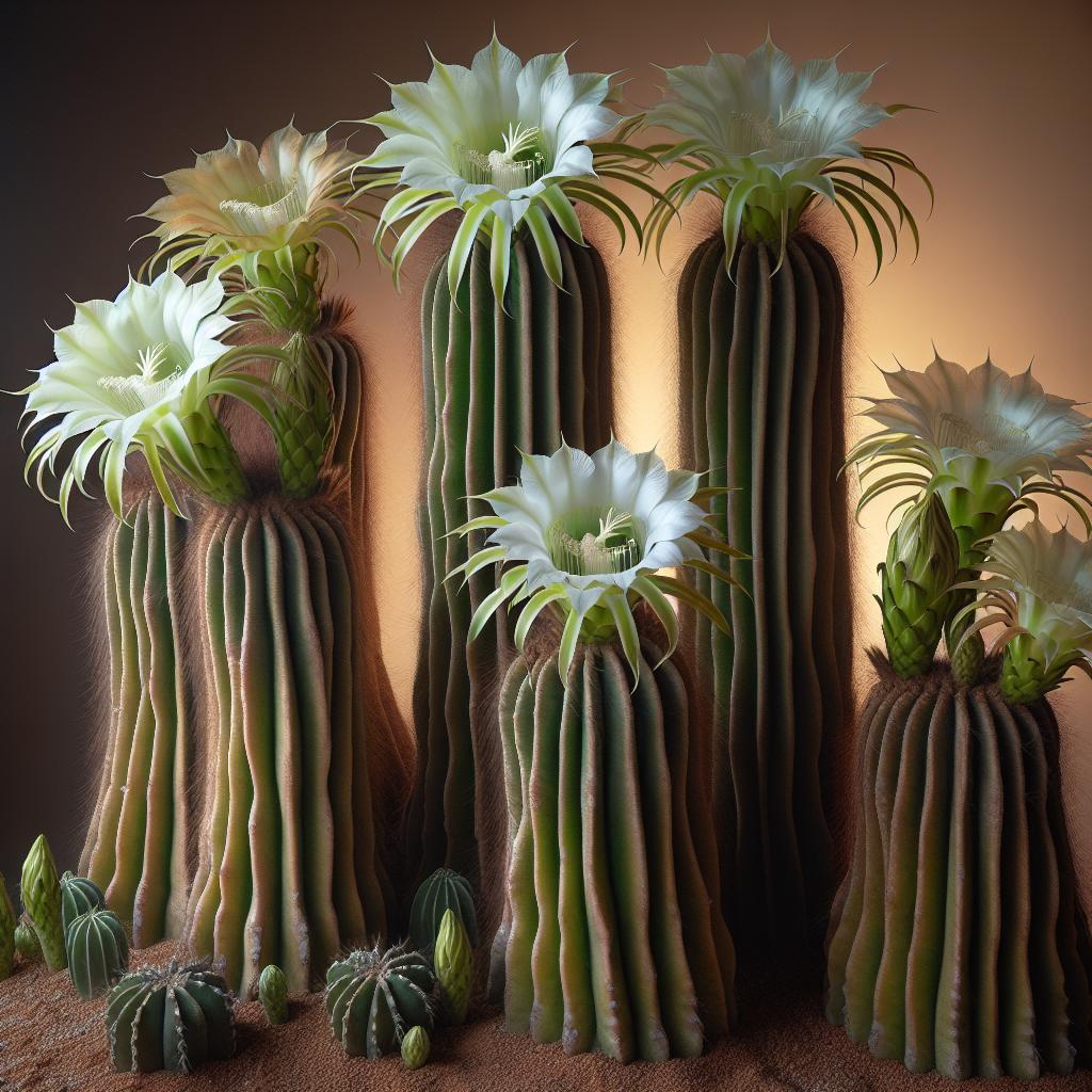### Harrisia martinii #### Safety Information for Pets - **Toxicity to Pets**: The Harrisia martinii, commonly known as the Moon Cactus or Harrisia Cactus, is generally considered non-toxic to pets, including cats and dogs. However, it is always advisable to keep an eye on pets to prevent them from chewing on the plant, as the spines can cause physical injury or irritation. #### Detailed Plant Information - **Scientific Name**: Harrisia martinii - **Common Names**: Moon cactus, Moon Cactus, Harrisia cactus, Moonlight cactus, Mooncactus, Snake cactus, Mooncactus, Moon Cactus, Harrisia kaktus, Toukaktus - **Family**: Cactaceae - **Plant Type**: Cactus #### Description - **Growth Habit**: Harrisia martinii is a perennial cactus that typically grows upright with an erect, columnar form. It can reach heights of up to 1.5 meters (approximately 5 feet) in the wild. - **Stems**: The stems are cylindrical, ribbed, and typically green, covered in clusters of spines. The ribs are usually prominent and may number between 10 to 15 per stem. - **Spines**: The spines are sharp, needle-like, and can range in color from yellow to brown. They are clustered along the ribs of the stem, providing the plant with a distinctive, somewhat intimidating appearance. - **Flowers**: Harrisia martinii produces large, showy, night-blooming flowers that are typically white or pale yellow. The flowers are fragrant and can be up to 20 cm (approximately 8 inches) in diameter. They usually bloom in the spring and summer. - **Fruits**: The fruit is oval to spherical, often red or purple when ripe, and can be edible. However, the fruit is also covered in small spines, which need to be carefully removed before handling or consumption. #### Habitat and Distribution - **Native Range**: Harrisia martinii is native to South America, particularly to regions in Argentina, Bolivia, and Paraguay. - **Preferred Environment**: This cactus thrives in arid to semi-arid environments, preferring well-drained sandy or rocky soils. It is well-suited to desert landscapes and can tolerate drought conditions. It requires full sun to partial shade to grow optimally. #### Cultivation and Care - **Soil**: Use a well-draining cactus or succulent mix. Avoid heavy, water-retentive soils as they can lead to root rot. - **Watering**: Water sparingly. Allow the soil to dry out completely between waterings. Overwatering is a common cause of problems in cacti care. - **Light**: Prefers full sun but can tolerate partial shade. Insufficient light can lead to etiolation, where the cactus becomes elongated and pale. - **Temperature**: Harrisia martinii is frost-sensitive and prefers temperatures between 20°C to 30°C (68°F to 86°F). It should be protected from frost and cold drafts. - **Fertilization**: During the growing season (spring and summer), a diluted cactus fertilizer can be applied once a month. No fertilization is needed during the dormant period (fall and winter). #### Propagation - **Seeds**: Germination from seeds can be a slow process but is possible. Seeds should be sown in a well-draining soil mix and kept moist until germination. - **Cuttings**: Stem cuttings are a more common method of propagation. Cut a healthy stem, allow the cut end to callous over for a few days, and then plant it in a well-draining soil mix. Water sparingly until new growth appears. #### Potential Problems - **Pests**: Watch for common cactus pests such as mealybugs, spider mites, and scale insects. Regular inspection and prompt treatment with appropriate insecticides or natural remedies can help manage these issues. - **Diseases**: Root rot is a significant concern due to overwatering. Ensure proper drainage and avoid excessive moisture to prevent this problem. ### Summary Harrisia martinii, or Moon Cactus, is a striking and resilient cactus species that can be a unique addition to any cactus collection. With proper care and attention to its specific needs, it can thrive and even produce beautiful night-blooming flowers. Always handle with care due to its sharp spines, and monitor interactions with pets to avoid any accidental injuries.