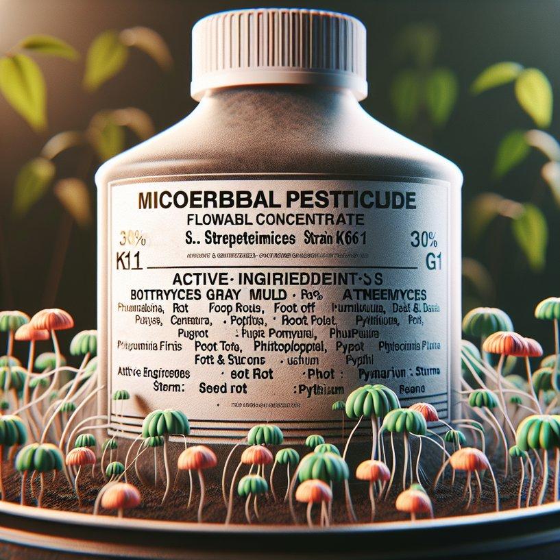 Mycostop Biofungicide for Vegetable Crops is a pesticide product manufactured by an unspecified company and is available in an unspecified form. Its active ingredient is Streptomyces strain K61, which comprises 30% of the product. Mycostop is designed to control fungal diseases in vegetable crops, although specific pests it targets are not mentioned in the provided information. Typically, this biofungicide is used by applying it directly to the soil or as a foliar spray where vegetables are planted. The Streptomyces strain K61 works by colonizing the plant root system and creating a protective barrier against harmful pathogens, thus promoting healthier growth and reducing disease incidence. Regarding its toxicity, there is no specific information provided about the effects of Mycostop Biofungicide on cats and dogs. However, given that it contains a strain of bacteria (Streptomyces), which is often considered to be low in toxicity to mammals, it is generally deemed safe around pets. Nevertheless, it is always prudent to keep pets away from treated areas until the product has dried or settled to avoid any potential, albeit minimal, risk of exposure. Always follow the safety guidelines provided on the product label for specific usage instructions and precautions.