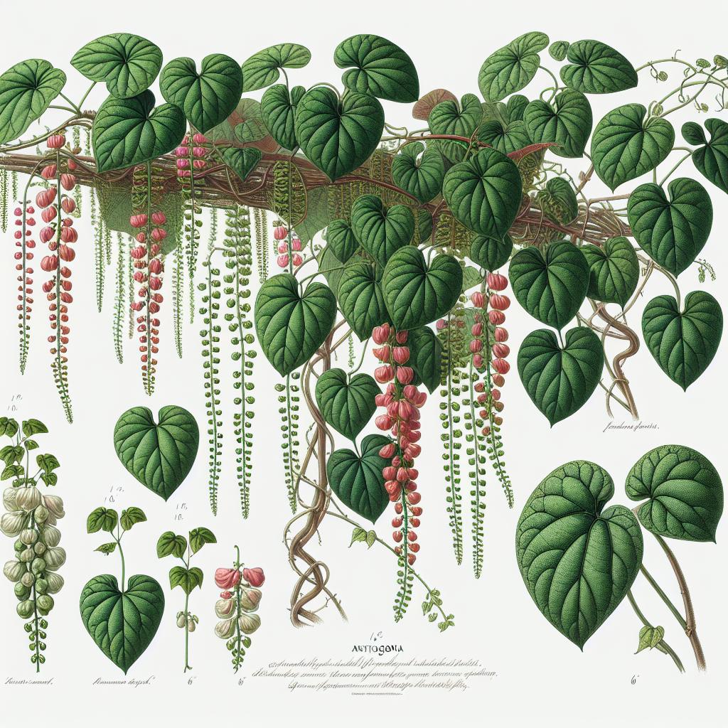 ### Safety Information for Pets **Antigonon** species, including the commonly known **Antigonon leptopus** (Coral Vine or Mexican Creeper), are not specifically listed as toxic to pets by major animal welfare organizations such as the ASPCA. However, it’s always prudent to observe caution. If you notice any signs of distress in your pets after exposure or ingestion of this plant, contact your veterinarian immediately. ### Detailed Plant Description #### **Scientific Name**: Antigonon #### **Common Names**: - Coral Vine - Mexican Creeper - Chain of Love - Queen's Wreath #### **Family**: Polygonaceae #### **Plant Type**: Vine ### Characteristics: #### **Growth Habit**: - **Antigonon** is a vigorous, fast-growing deciduous vine. - It can climb up to 40 feet or more via tendrils, making it ideal for trellises, fences, and arbors. #### **Leaves**: - The leaves are heart-shaped, bright green, and arranged alternately along the stem. - They can grow up to 4 inches long and have a slightly rough texture. #### **Flowers**: - The plant is renowned for its showy clusters of small, tubular flowers. - Flowers are most commonly pink, but white and coral varieties also exist. - Blooming is prolific during the warmer months, often from late spring to fall. - The flowers attract pollinators such as bees and butterflies. #### **Fruit**: - Following the flowering period, **Antigonon** produces small, three-angled fruits. - The seeds can propagate easily, contributing to the plant's rapid spread. ### Cultivation: #### **Light**: - Prefers full sun to partial shade. - Full sun will encourage the best flowering. #### **Soil**: - Grows well in a variety of soil types, from sandy to loamy, provided they are well-drained. - Tolerates poor soils, but flourishes in fertile conditions. #### **Water**: - Once established, **Antigonon** is quite drought-tolerant. - Regular watering is recommended to ensure vigorous growth, especially during dry periods. #### **Temperature**: - Thrives in USDA hardiness zones 9-11. - Can tolerate light frost, but heavy frost may damage or kill the plant. #### **Pruning**: - Pruning is essential to manage its growth and prevent it from becoming invasive. - Best pruned in late winter or early spring before new growth starts. ### Uses: #### **Ornamental**: - Popular for its aesthetic appeal in gardens, particularly for covering unsightly structures or creating lush, green screens. - Suitable for hanging baskets and container gardening. #### **Ecological**: - Attracts pollinators, contributing to the local ecosystem's health. ### Potential Concerns: #### **Invasiveness**: - In some regions, **Antigonon** is considered invasive due to its rapid growth and prolific seeding. - It can outcompete native plant species, so it's essential to manage its spread responsibly. ### Conclusion **Antigonon** is a beautiful and versatile vine that can be a delightful addition to gardens and landscapes. While it's generally safe for pets, monitoring its interaction with your animals and controlling its growth to prevent invasiveness are good practices for any gardener.
